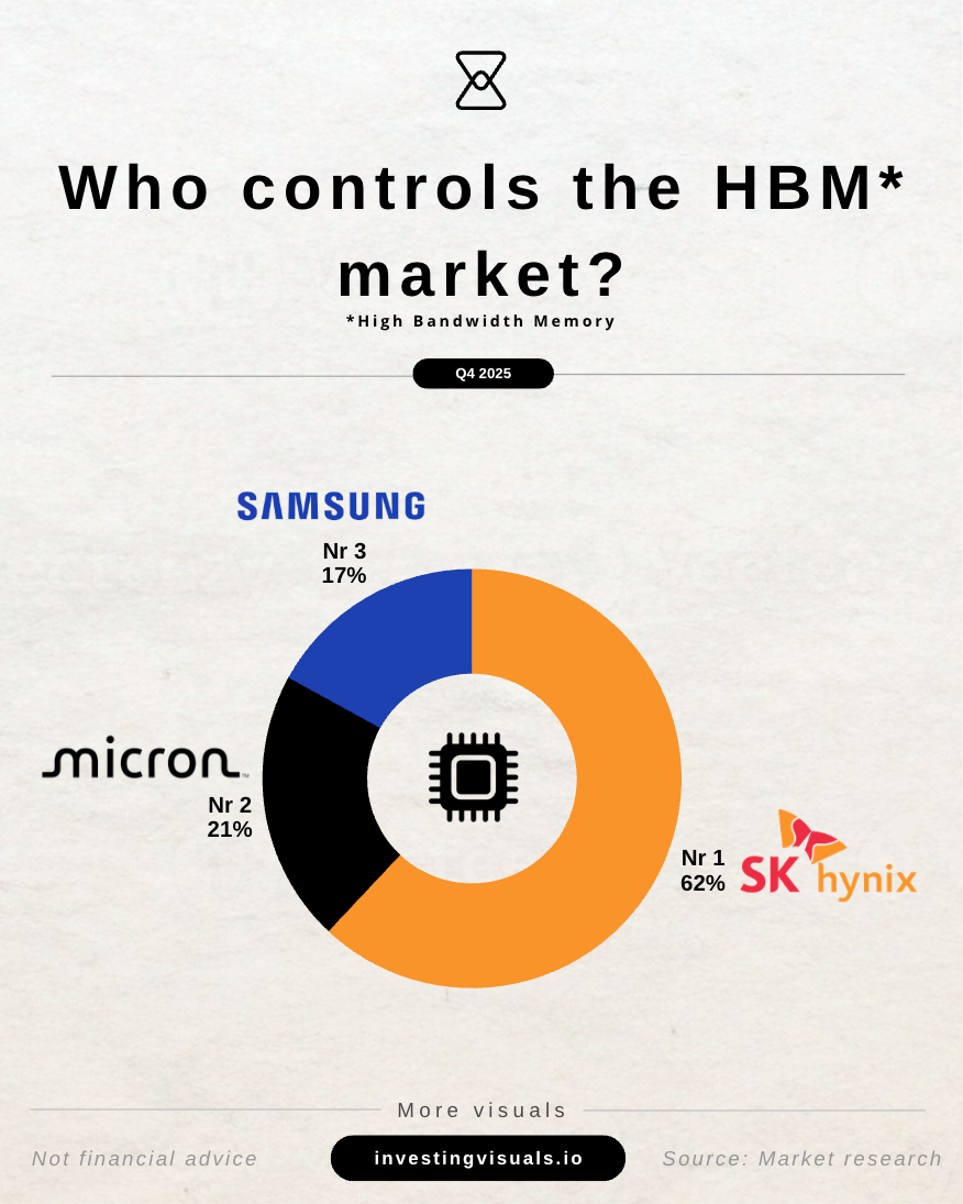 | HBM market share | ~62% | ~21–25% | ~17–22% |