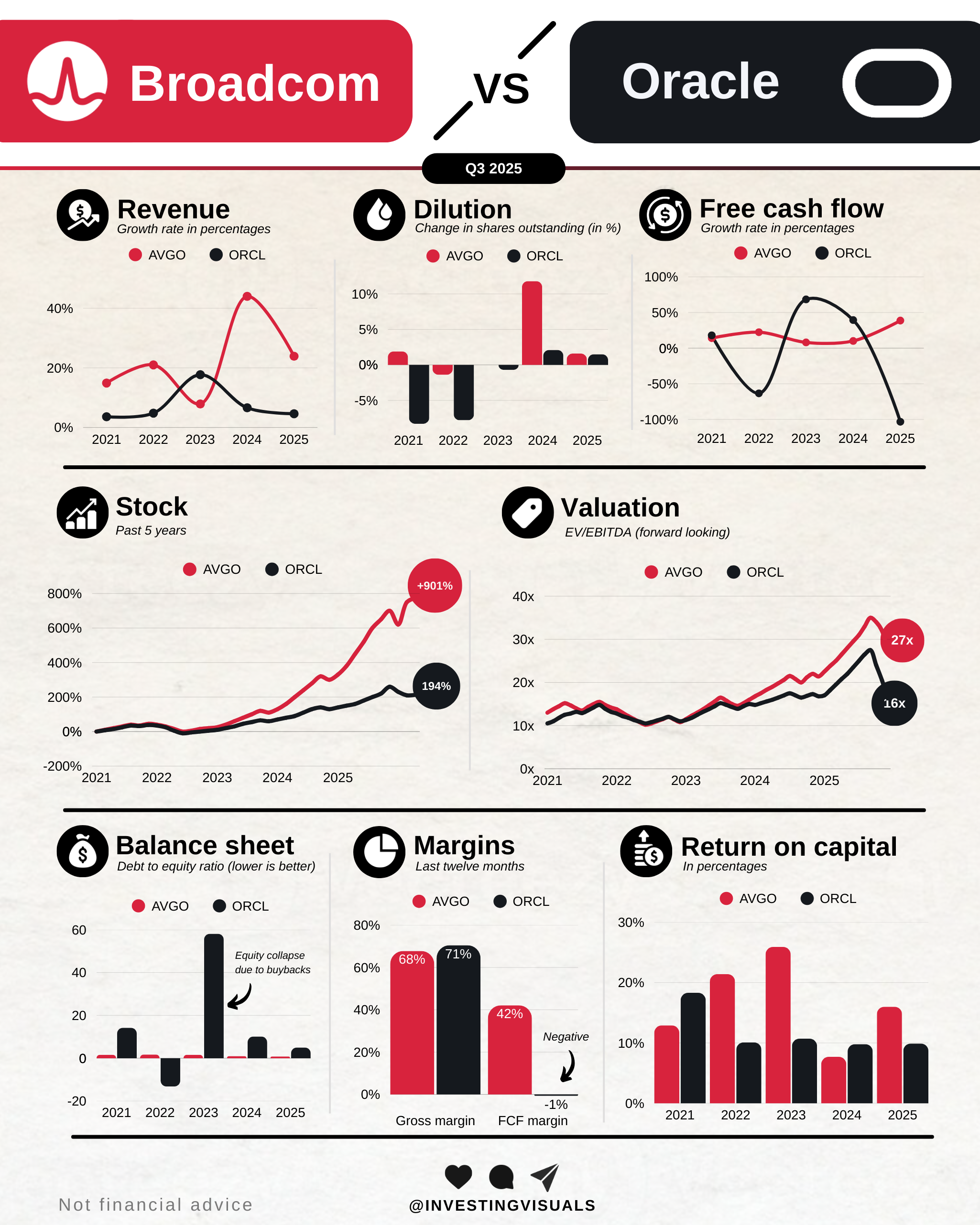 Jan 05, 2026 1 min read Business Battles Investing visuals Broadcom vs Oracle Click the image for higher resolution. Sign-up Get the latest updates and news in your inbox Subscribe Email sent. Check your inbox!