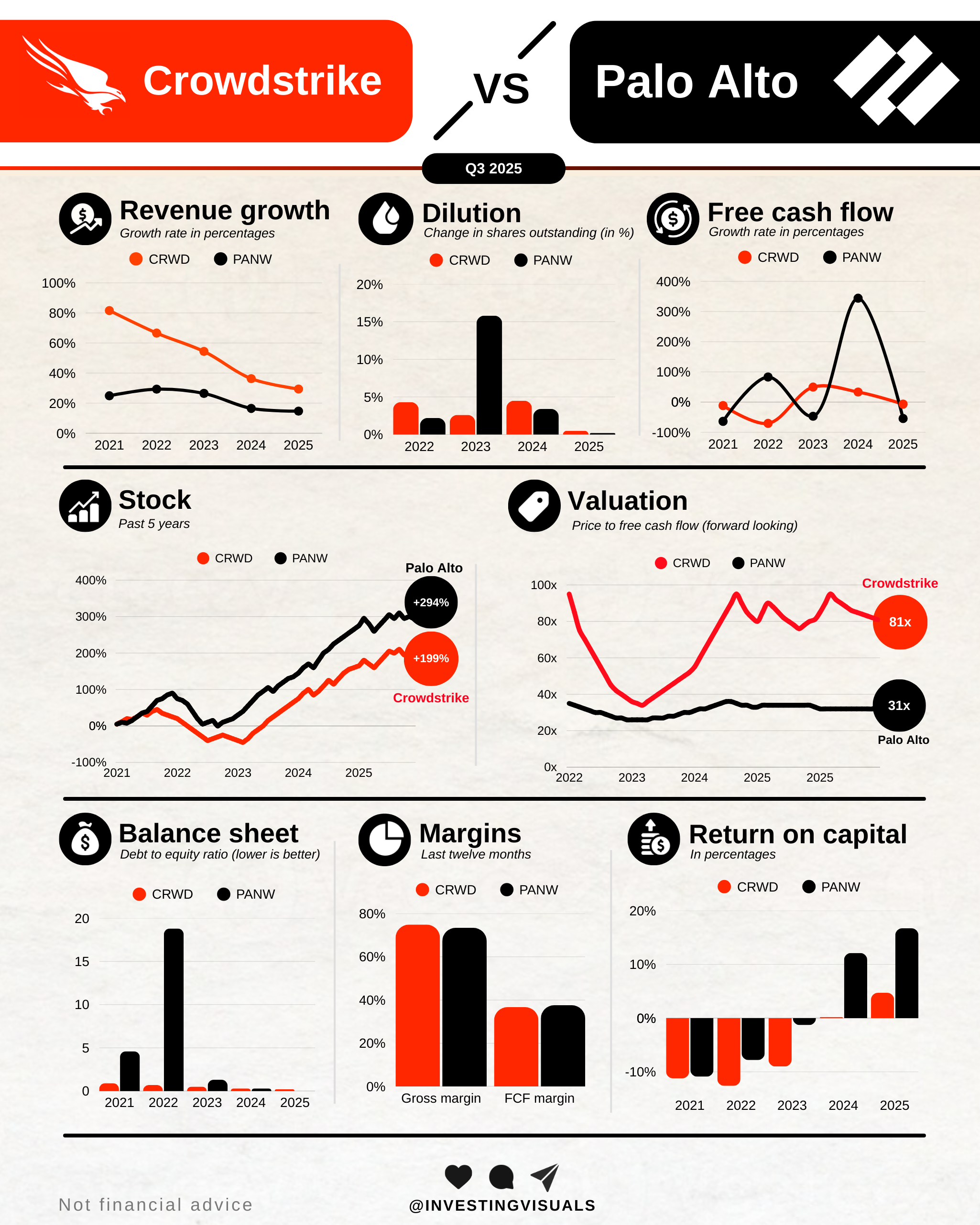 Jan 05, 2026 1 min read Business Battles Investing visuals Business battle: Crowdstrike vs Palo Alto Click the image for higher resolution. Sign-up Get the latest updates and news in your inbox Subscribe Email sent. Check your inbox!