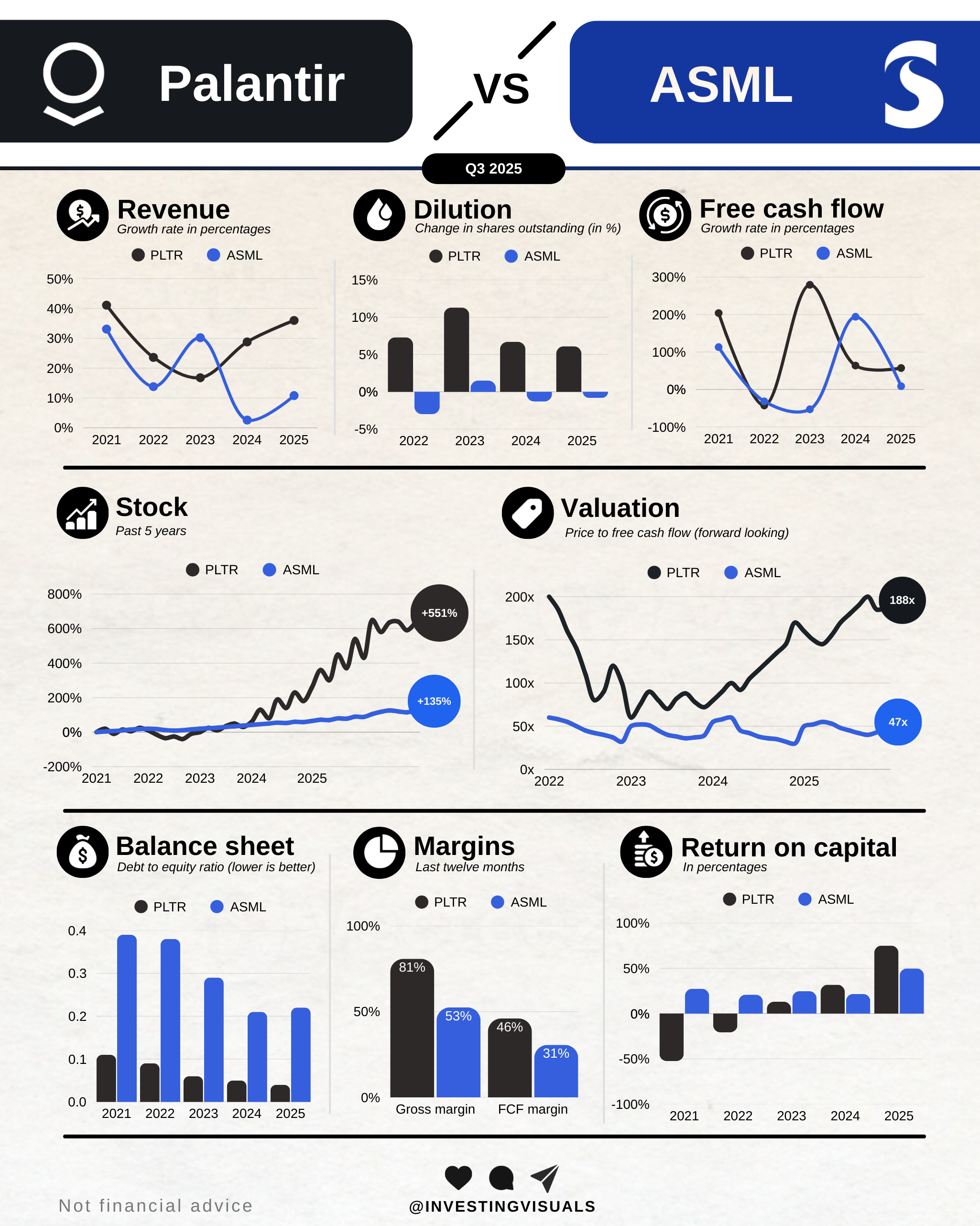 Jan 07, 2026 1 min read Business Battles Investing visuals Palantir vs ASML Click the image for higher resolution. Sign-up Get the latest updates and news in your inbox Subscribe Email sent. Check your inbox!