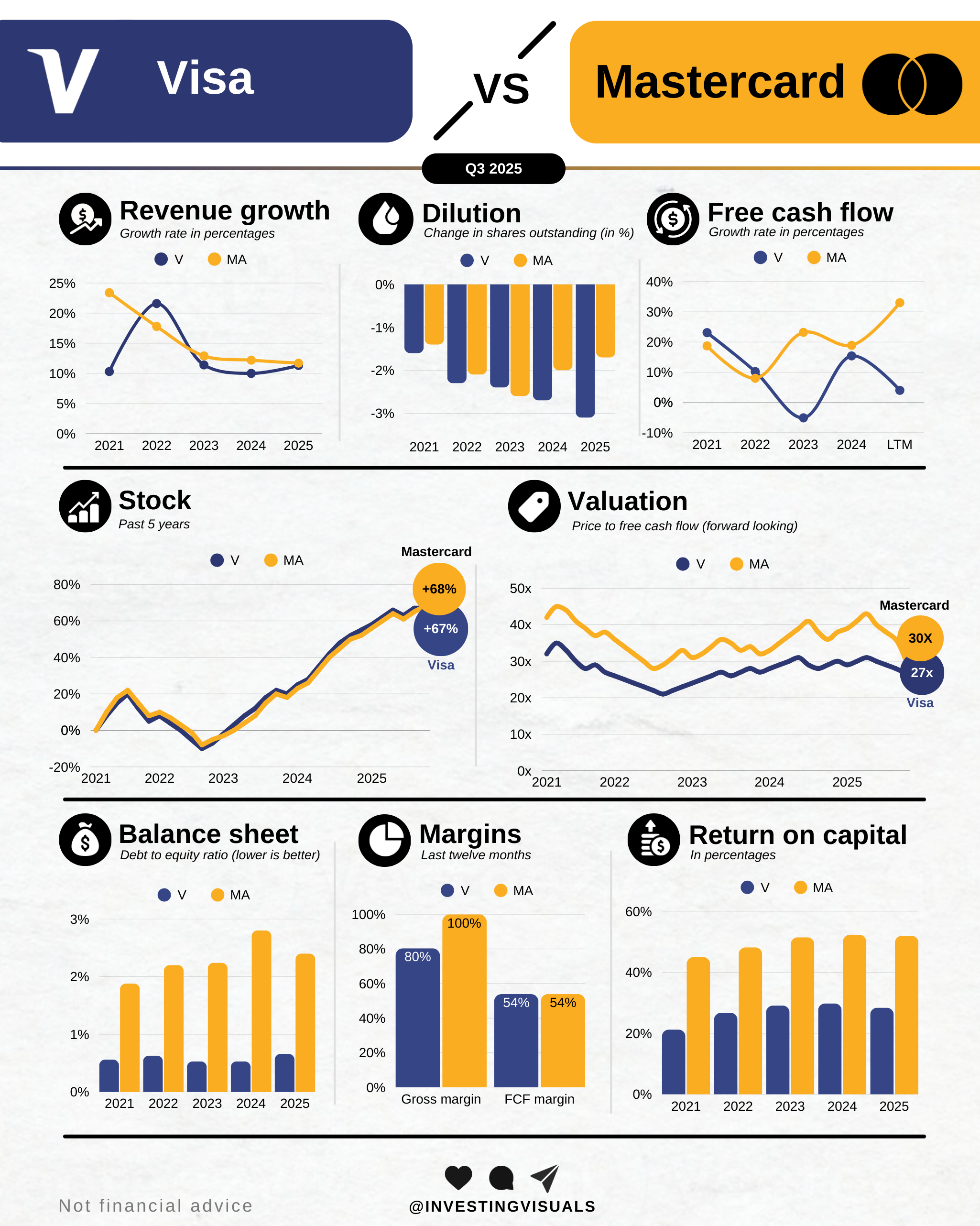 Dec 18, 2025 1 min read Business Battles Investing visuals Visa vs Mastercard Click the image for higher resolution. Sign-up Get the latest updates and news in your inbox Subscribe Email sent. Check your inbox!