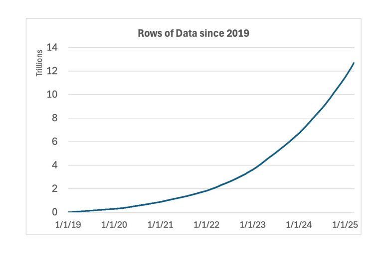 In the past six years, the total number of rows we've stored in BigQuery has grown dramatically, doubling every year to roughly 13 trillion rows today ~ Duolingo