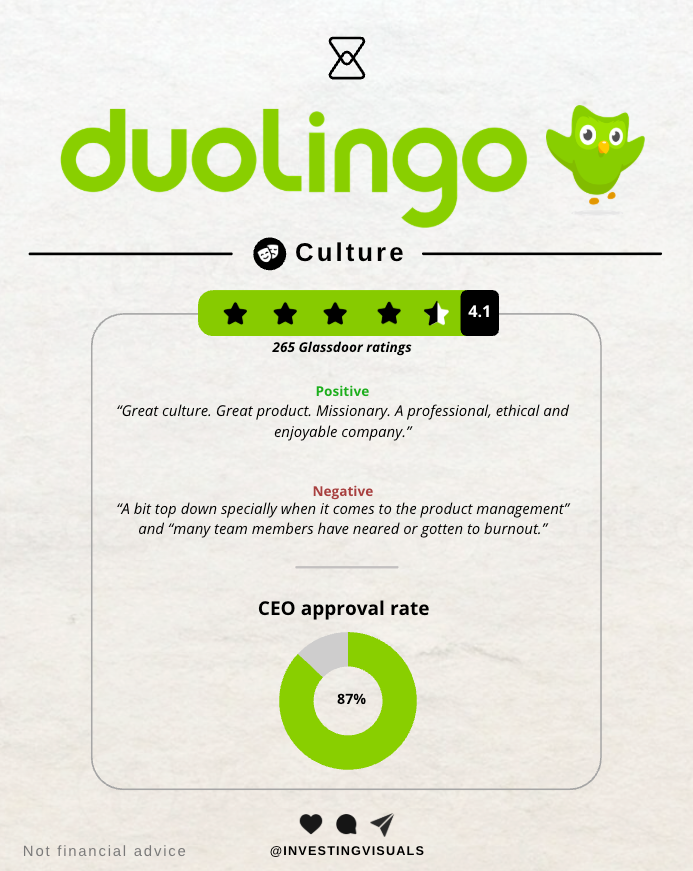 I think culture is an underappreciated and often overlooked part of investing. Ultimately, it’s the people who make the business. When looking at Duolingo, they are very much a mission driven business. They do so through 12 operating principles.