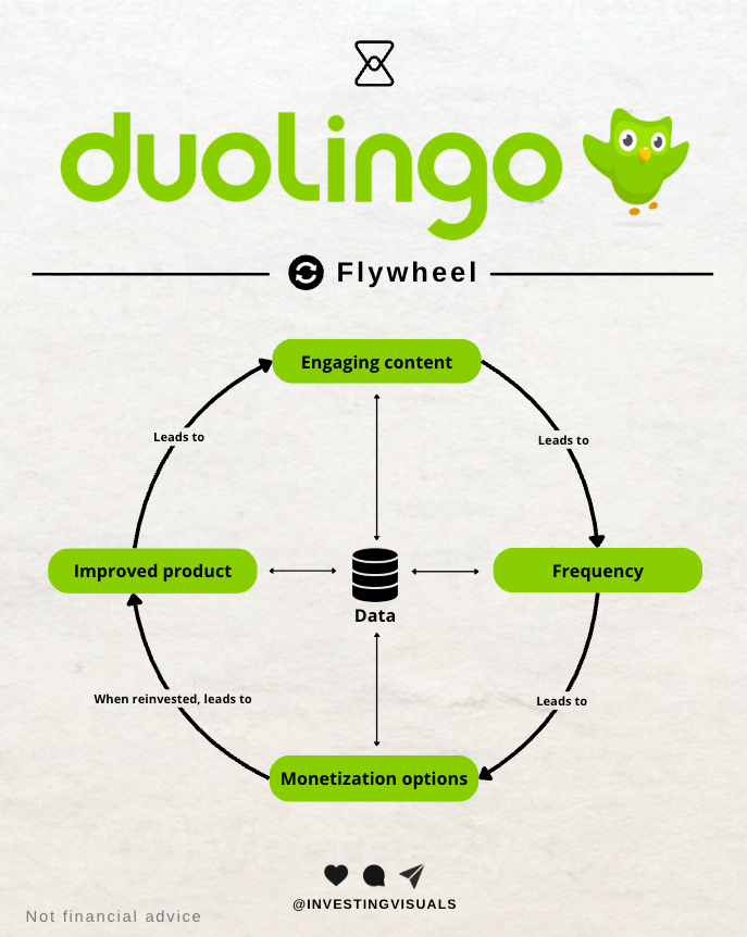Duolingo’s edge is not linked to a single feature, but a data driven system that continuously improves the product by turning scale into insight, and insight into shipping. Leading to the flywheel shown earlier.