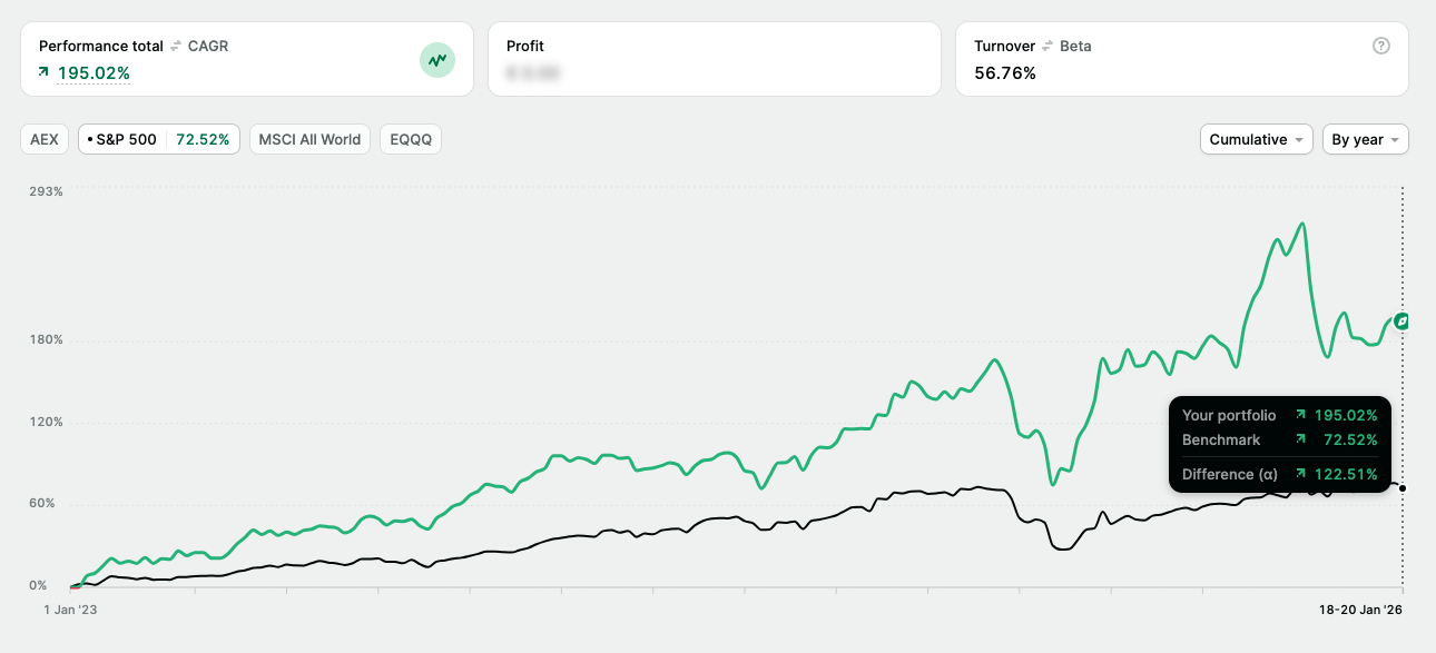 In the years after, my CAGR improved dramatically. In part due to the bull market that followed 2022, but also as a result of better understanding, better behavior, a better process and a longer time horizon, resulting in a 42% CAGR over the past 3 years.