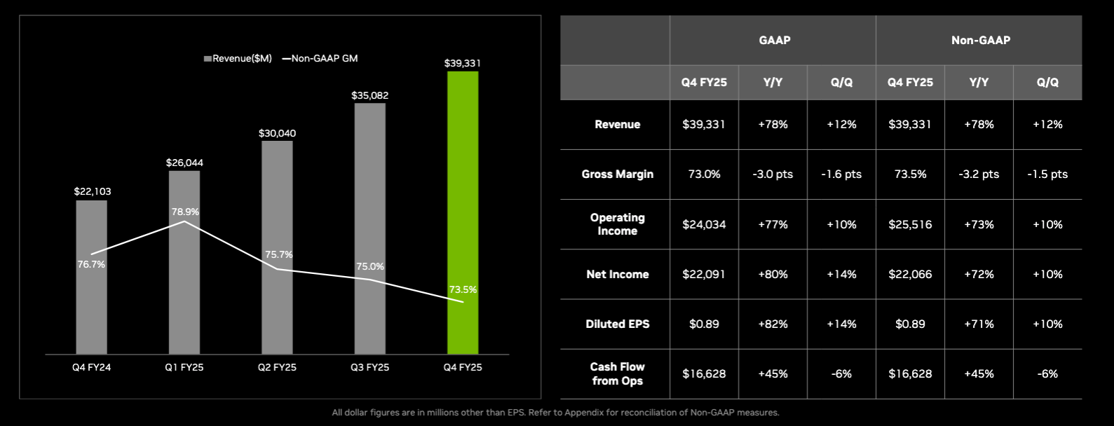 - Q4 revenue: $68.1B, up 20% quarter over quarter and up 73% year over year