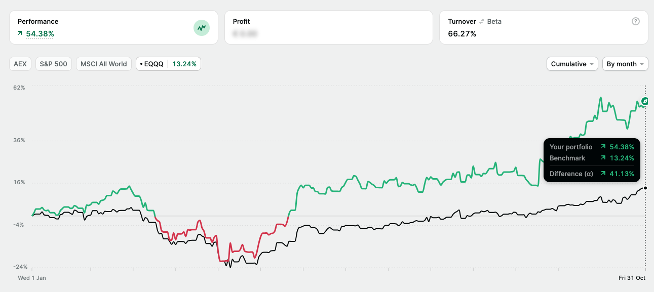 - Year-to-date performance: +54% vs S&P 500 +8%