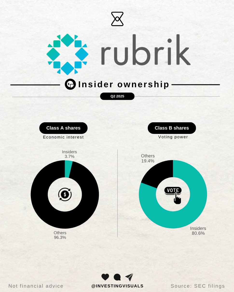 Rubrik is effectively a founder-controlled company, even though much of the economic interests are now in the hands of institutions and public shareholders.