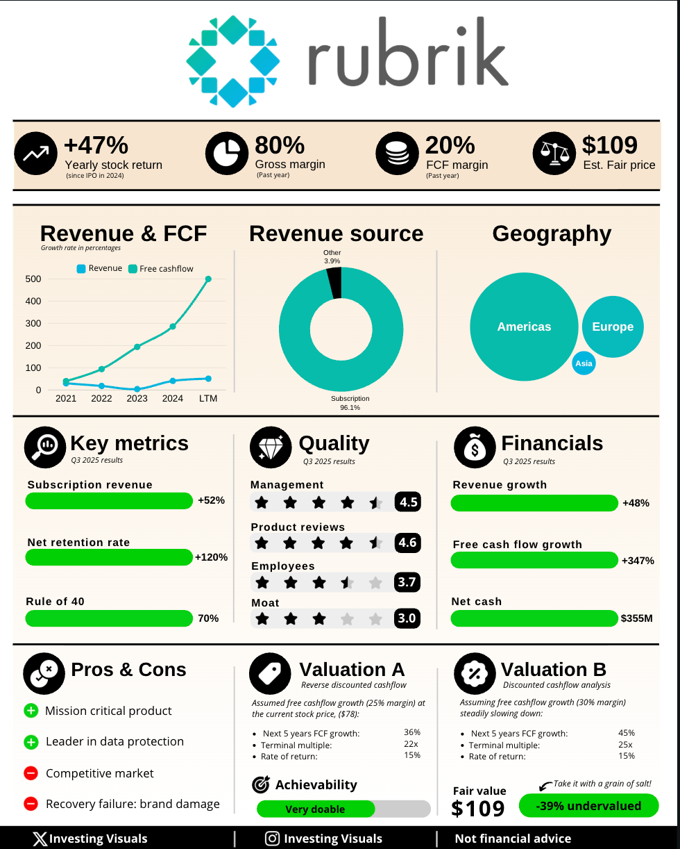 Note: as of September 2025, I own shares of Rubrik at an average price of ~$76.
