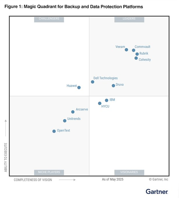 As the quadrant shows, Rubrik is mainly competing with three other players: