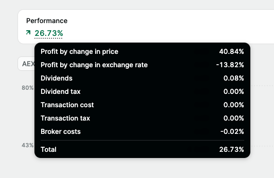 In the example below, you can see what this looks like for my 2025 performance. The first one is the MWRR overview and the second is absolute returns. See how much exchange rate affected my performance?
